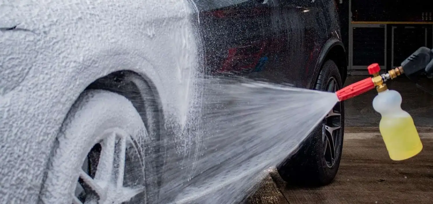 Pre-washing: The exterior detail starts with pre-washing, which involves removing heavy dirt and grime from your car’s exterior. Using a pressure washer and a foam cannon helps to remove the dirt particles effectively, preparing the surface for a more thorough cleaning.